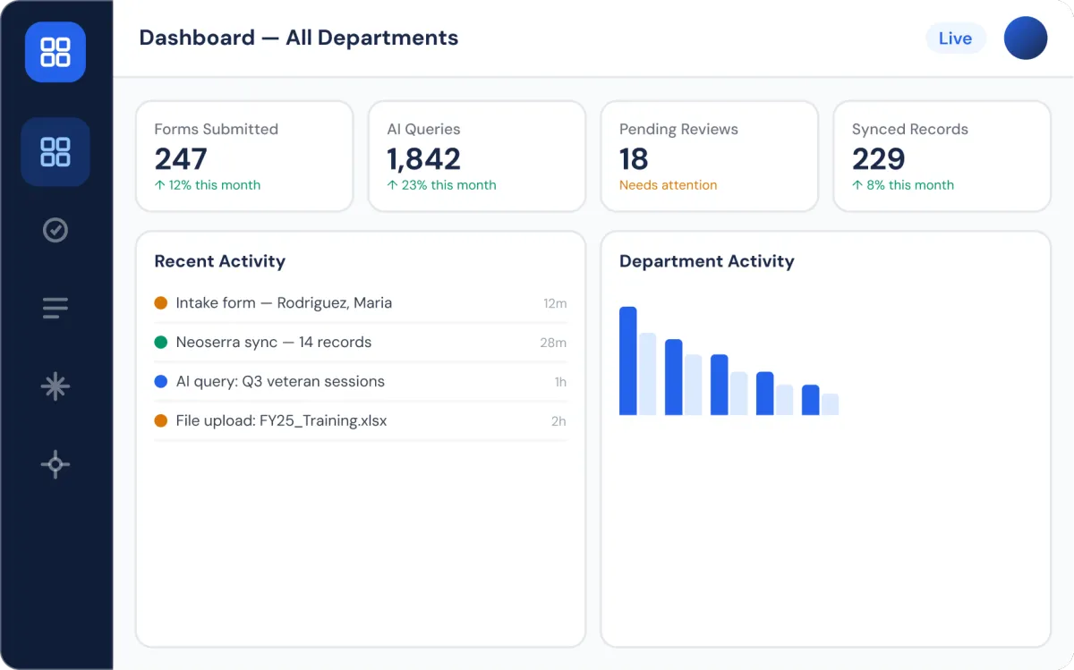 Most public sector organizations are sitting on years of valuable operational data spread across Google Sheets, archived PDFs, Word documents, and shared drives. When a compliance report is due or leadership asks for a performance summary, staff spend days manually compiling data that should take minutes.